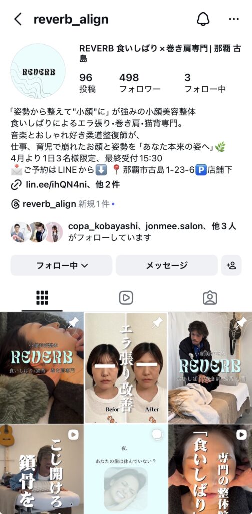 統一感のあるアカウントを構築し、開業と同時にInstagramから新規10人以上を集客